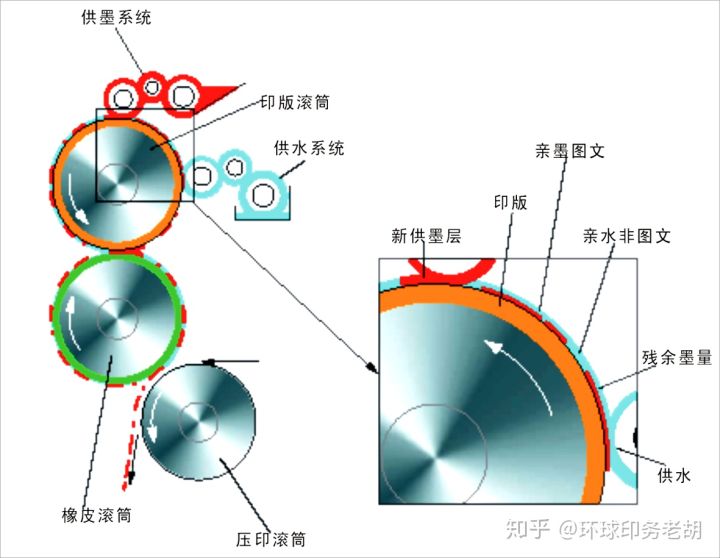 ◆首先由印版部件的供水裝置向印版的非圖文部分供水,從而保護(hù)了印版的非圖文部分不受油墨的侵濕。
