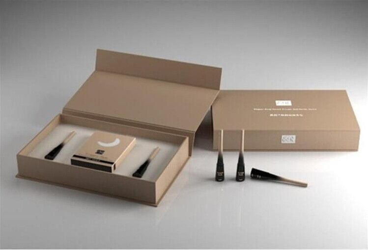 另一類則是裱糊盒。化妝品裱糊盒內(nèi)部板材通常采用灰板、密度板和中纖板,板材的規(guī)格與大小通常根據(jù)產(chǎn)品的重量以及容器的大小來選擇。包裝盒外裱紙張多選用157gsm銅版紙,壓紋藝術(shù)紙,一些高端的化妝品也有外裱PU皮革的。