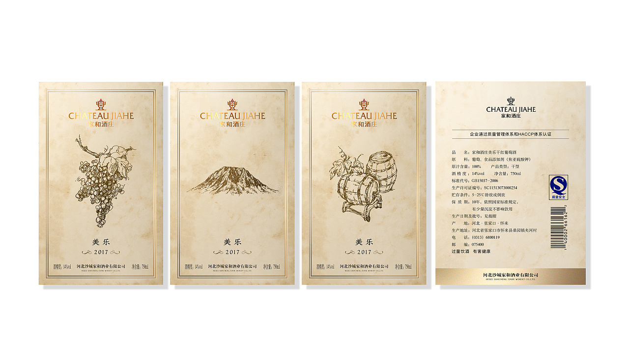 【造型】瓶貼采用了方圓曲折輪廓的異形,恰到好處的繁復(fù)手法增加了瓶貼的精致感;主視覺(jué)采用了張家口頗具代表性的雞鳴山造型,作為該款酒品的核心記憶點(diǎn);靈動(dòng)的羅馬體及仿宋體與設(shè)計(jì)相得益彰;