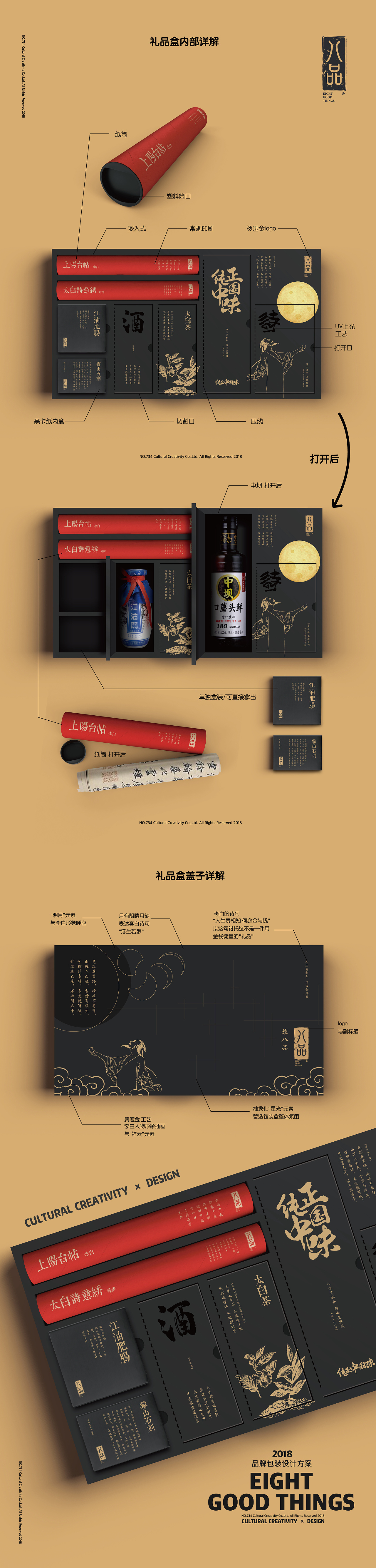 其工藝為 常規(guī)印刷+黑卡紙內(nèi)盒+透明磨砂紙+燙啞金+UV上光工藝