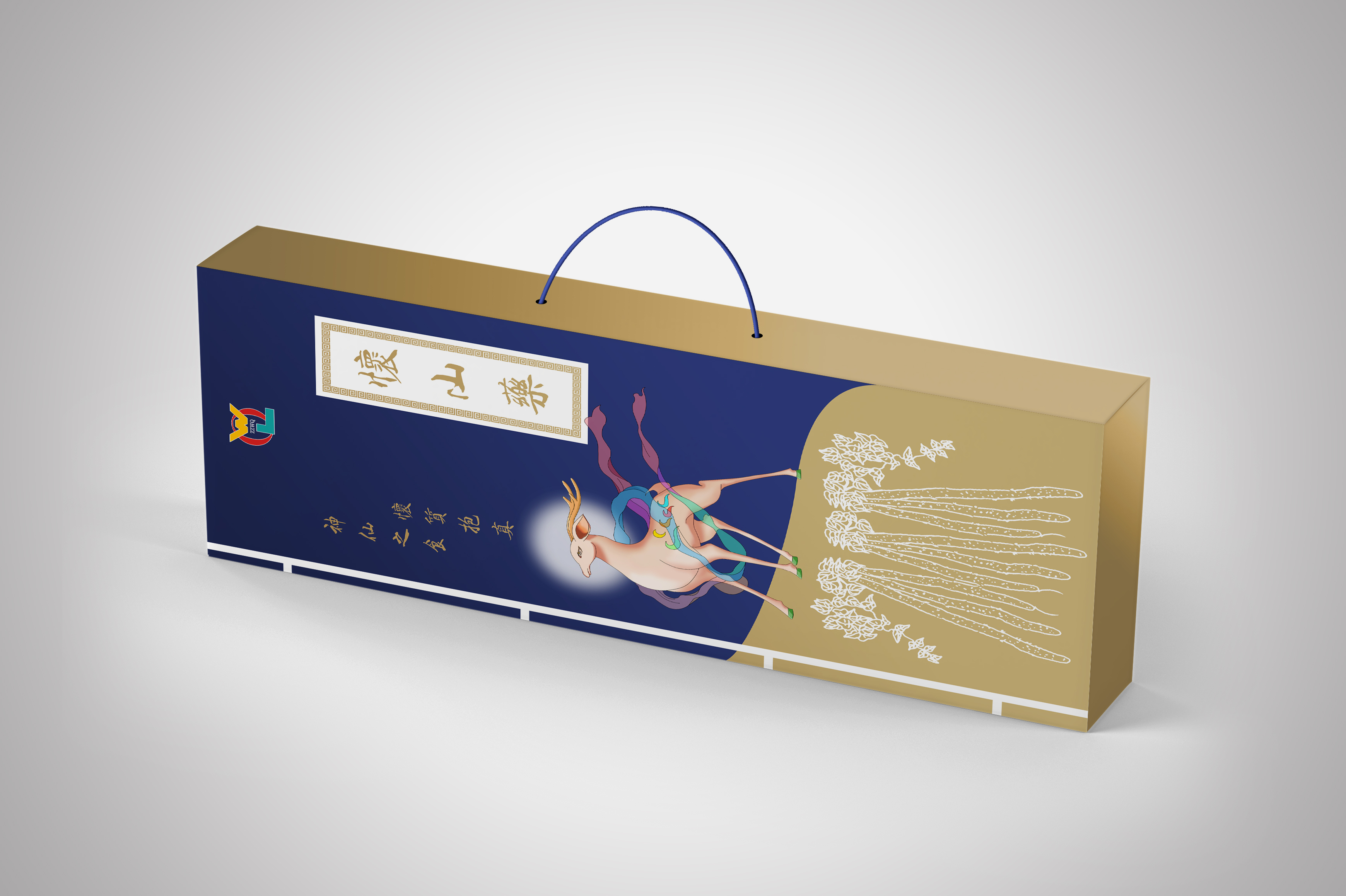 本山藥包裝盒引用古代書籍寶典的概念,通體采用白、藍、金三種顏色來搭配,給人一種有趣而又不失珍貴的感覺。