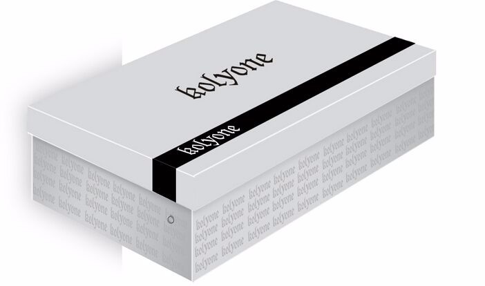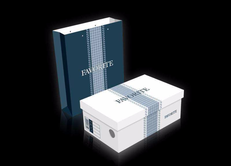 鞋盒材質(zhì):銅版紙彩色印刷 覆亞膜、壓紋對表2.0灰板手提袋:250克白卡紙覆亞膜,